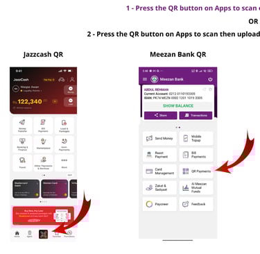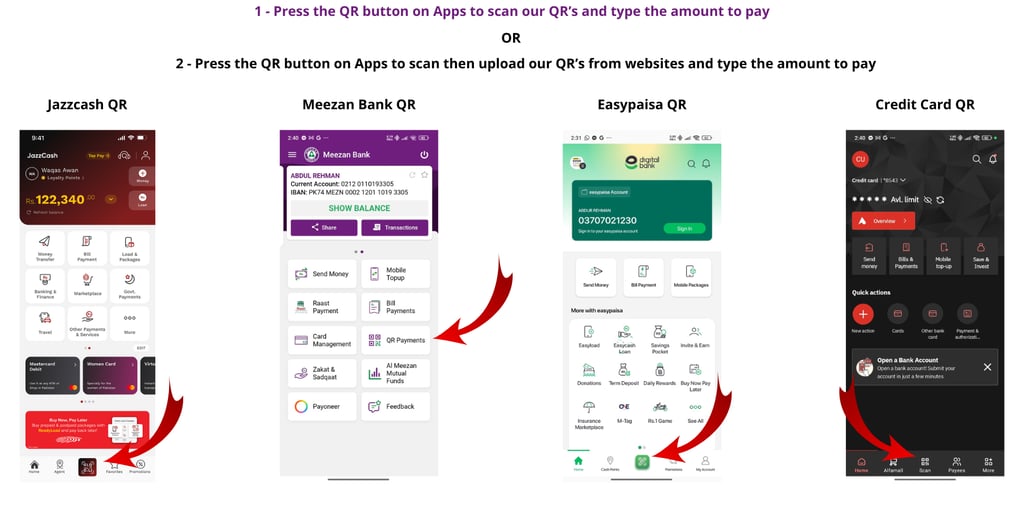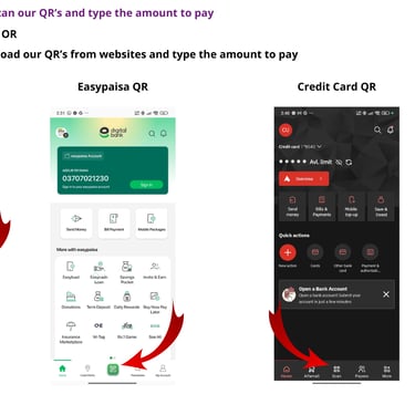scan the QR code below from JazzCash or EasyPaisa apps